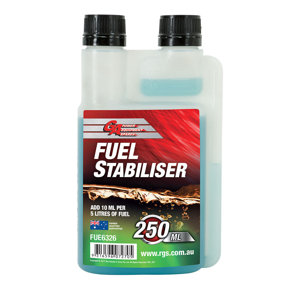 Features GA 250ml chamber pack of fuel stabiliser is a highly concentrated additive designed for the treatment of both unleaded or diesel fuel. For unleaded fuel use 10ml to 5 Litres of fuel. For diesel fuel use 250ml to 500 Litres of Fuel GA Fuel Stabiliser will not affect seals, hoses and fittings within the fuel system. Regular use will eliminate problems associated with condensation, and prevent further biological growth from occurring. This will give rise to,