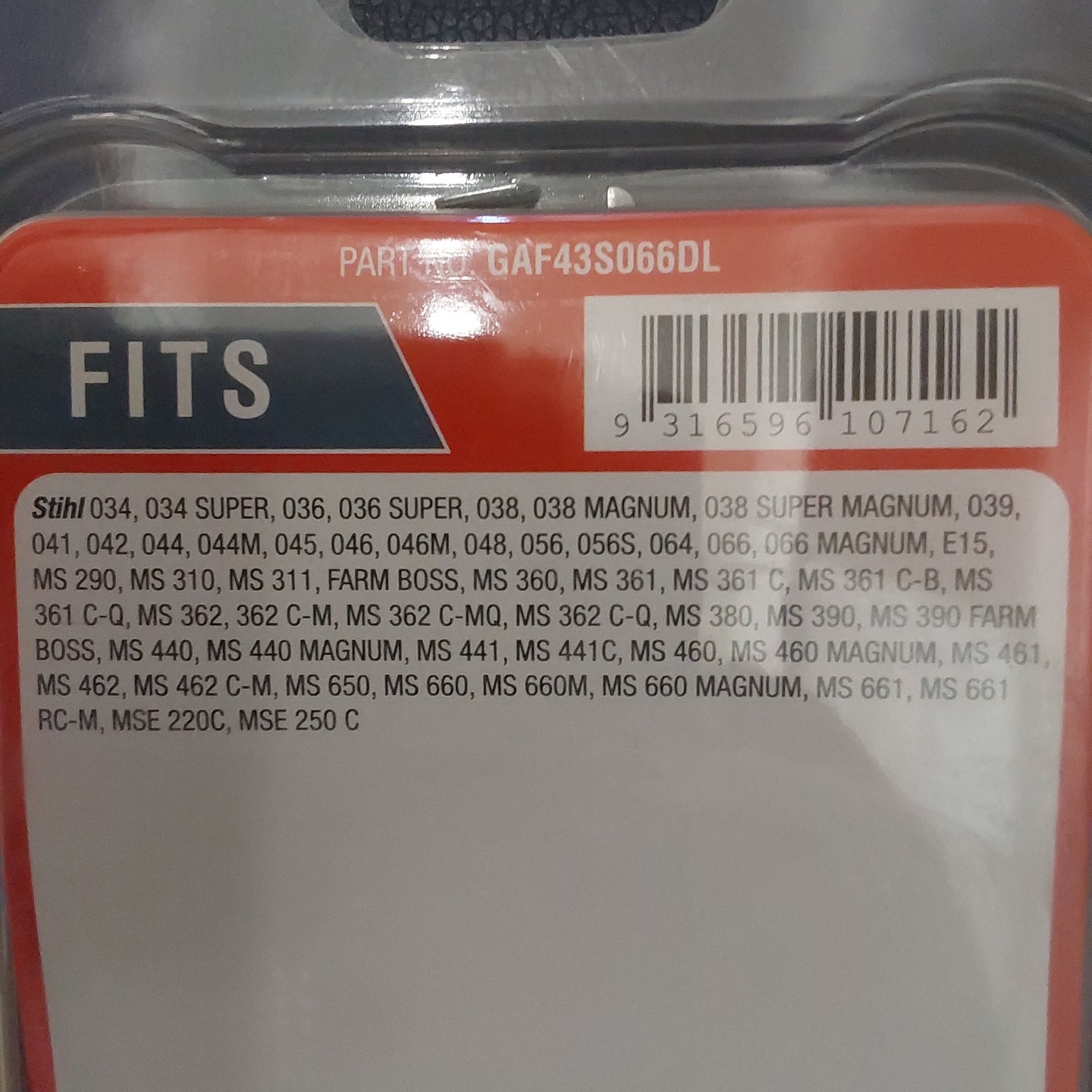 Fits:Selected chainsaws 50 cc to 100 cc when fitted with a 18" (45 cm) x 3/8” x .063"
