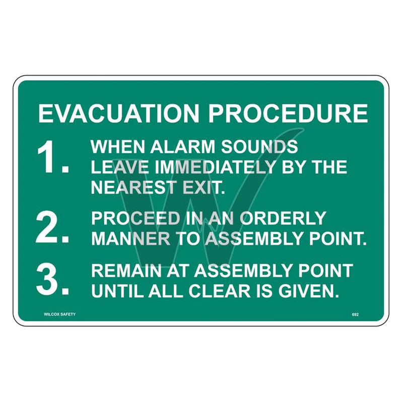 AS 1319 specifies that Emergency Information Signs should indicate the location of, or directions to, emergency related facilities such as exits, safety equipment or first aid facilities.