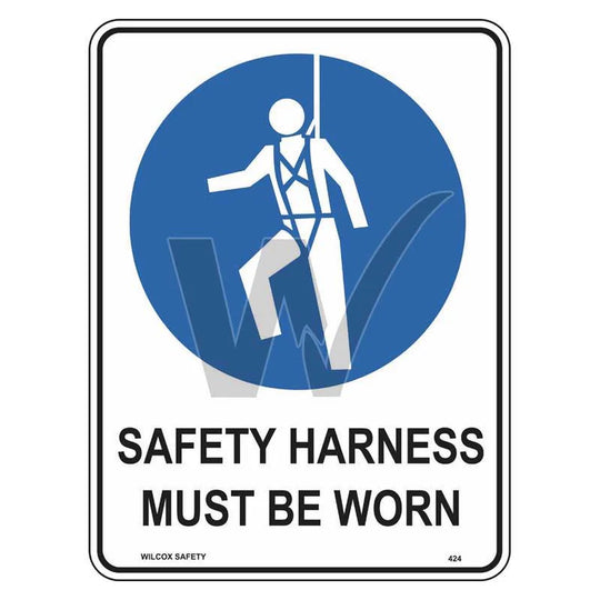 Sign-Safety Harness Must Be Worn-225mm-300mm-Metal