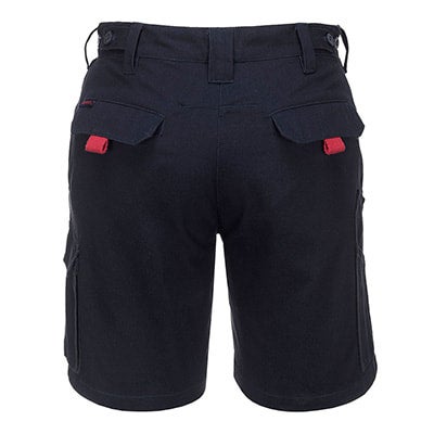 Ladies 100% Cotton Preshrunk cargo shorts. Reinforced stress points and cargo pockets for extra style and storage. Includes ruler pocket and waist dart for better fit.