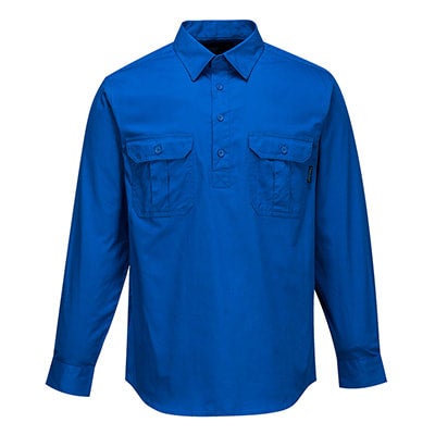 Lightweight 100% Cotton Long Sleeve closed front business shirt.