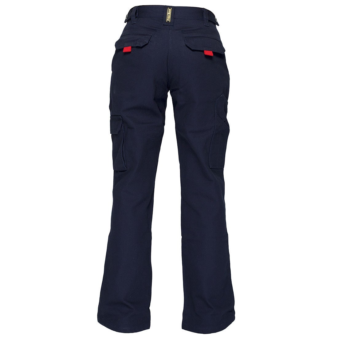 Includes ruler pocket and waist dart for better fit and tapered legs.